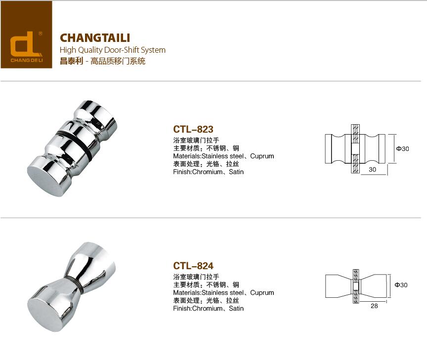 昌泰利五金廠主要生產加工玻璃吊輪、浴室拉手、淋浴房拉手系列、不銹鋼實心車件、移門拉手、單杠固定件、移門配件、廣告釘、玻璃門吊輪。我們擁有一支積極進取,年富力強,技術精良的高素質專業人才和的生產設備,長期細致的市場調查,使產品高層次的不斷研發,確立了公司的生產,營銷和服務的管理機制。無窮的意念與不斷的創新,是促進我們前進的優勢。無限創意的能力,是滿足客戶需求的保證。更加提高了偉興的信譽和綜合品位,也得到廣大客戶的賞識及支持。