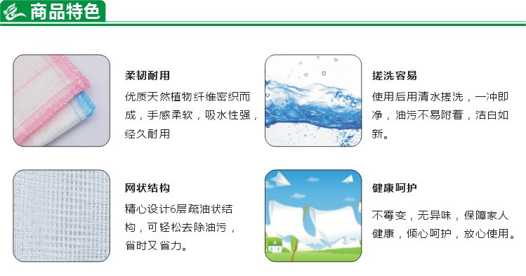 【用途】:洗碗刷盤、擦桌子、灶臺、瓷磚、碗池等。店主家正在使用這款洗碗巾,真的很神奇,沾滿油漬的碗盤,用它在上面擦一擦,油漬就全部吸附在洗碗巾上了,然后只要洗洗碗巾,油漬就輕松的洗掉了,洗碗巾恢復了白色,像新的一樣,完全做到健康環保,保護您和家人的健康。此寶貝對付濺在爐臺、瓷磚上的油污,或飯桌上殘留的菜湯,也是非常非常有效,一擦就掉,再也不用反復的擦來擦去。