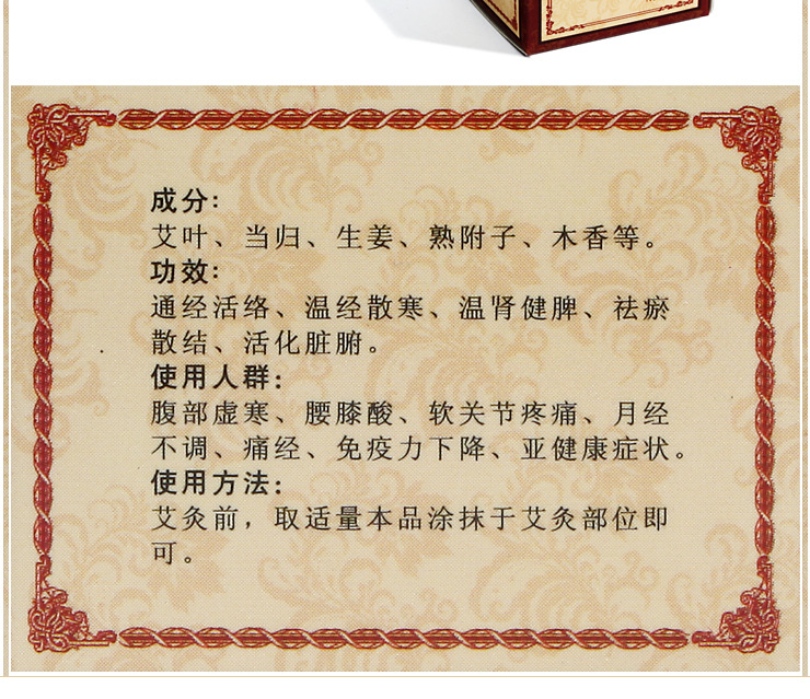 成分:艾葉、當歸、生姜、熱附子、木香等