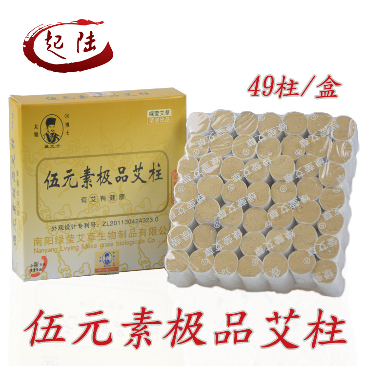 伍元素艾柱采用35:15年金艾絨精心炮制而成,含揮發油少,燃燒緩慢,火力溫和,燃著后煙少,艾灰不易脫落。在傳統灸條和基礎上,采用現代科學技術改進造成,經過多年實驗研究和臨床觀察,本品既保持了傳統灸條療效,又具有灸力強勁、耐燃、氣味芳香,不污染環境等優點。