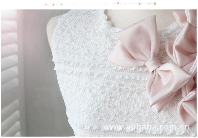 大大的蝴蝶結。嫩嫩的水粉.腰間還配上這么一條雪紡的腰帶。雪紡‘蕾絲‘兩者搭配。甜美的小女生。性感的小女人。都很適合呢。親們.穿上它.讓這個夏天更美好吧!