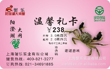 陽澄湖大閘蟹,大閘蟹禮券,大閘蟹批發,大閘蟹禮卡,658型號禮卡