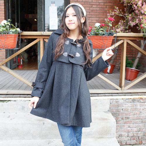 2014達娃新款牛角扣大衣 修身保暖毛呢 中長款呢子女秋冬裝風衣