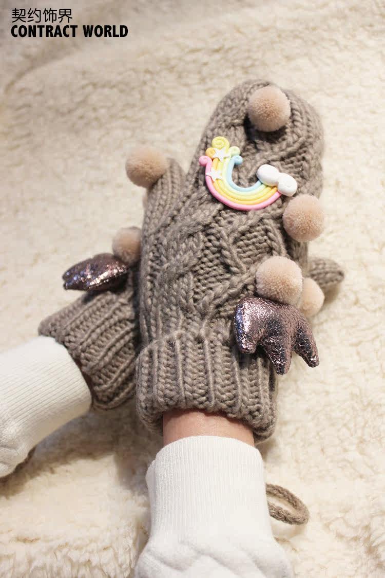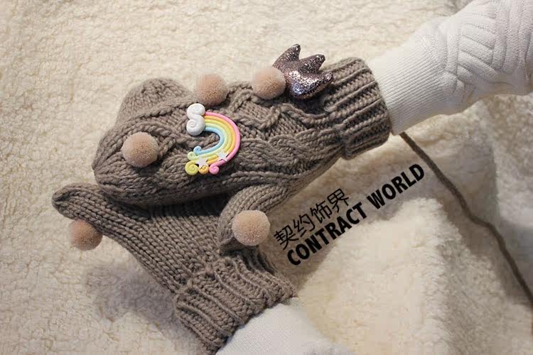 契約飾界設計師定制 冬季萌貨毛線包套 溫暖萌萌噠彩虹手套