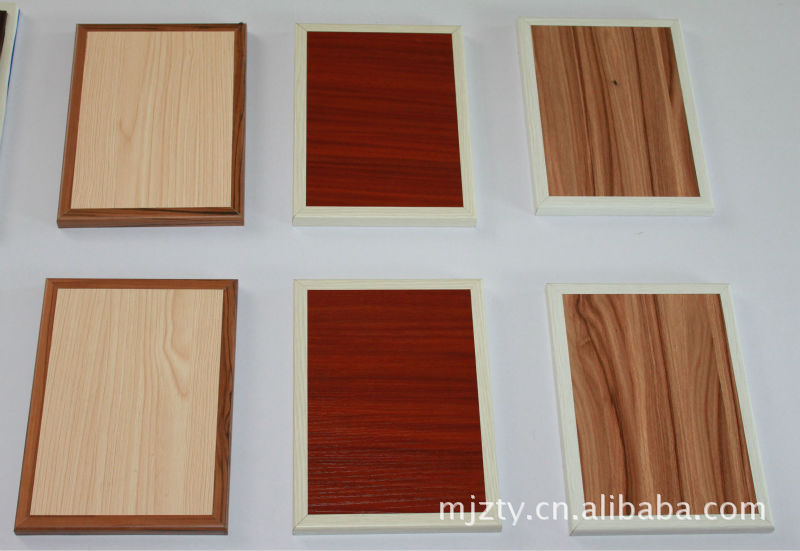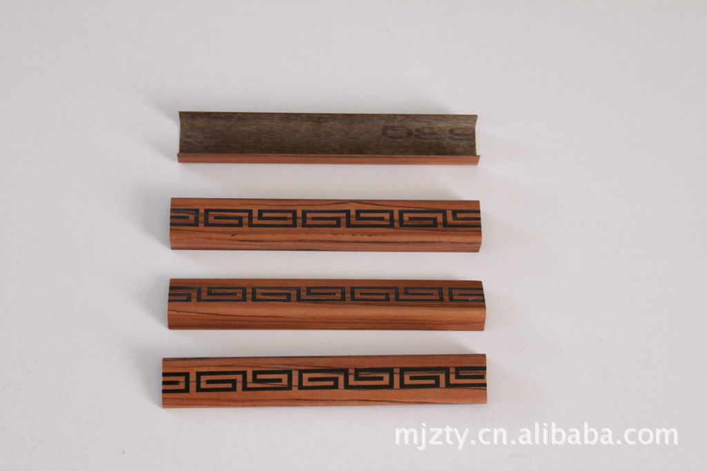 在房屋裝修中,由于本產品裝飾面板具有折角,對于多個角、多個面的所飾物可以連貫一體的直接貼飾在其表面,使被貼表面具有整體性而更美觀,一貼即完成,使木飾的表面貼飾工效提高,更簡捷,不必油漆還避免了污染。