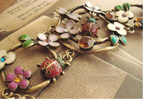 F3071 韓版飾品 滴油鑲鉆可愛瓢蟲 蜻蜓 鮮花朵朵手鏈