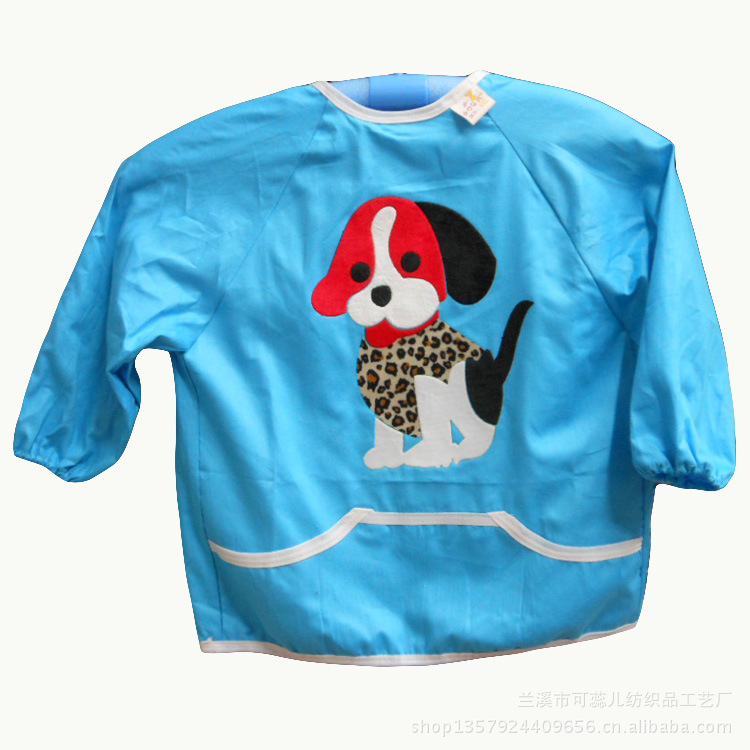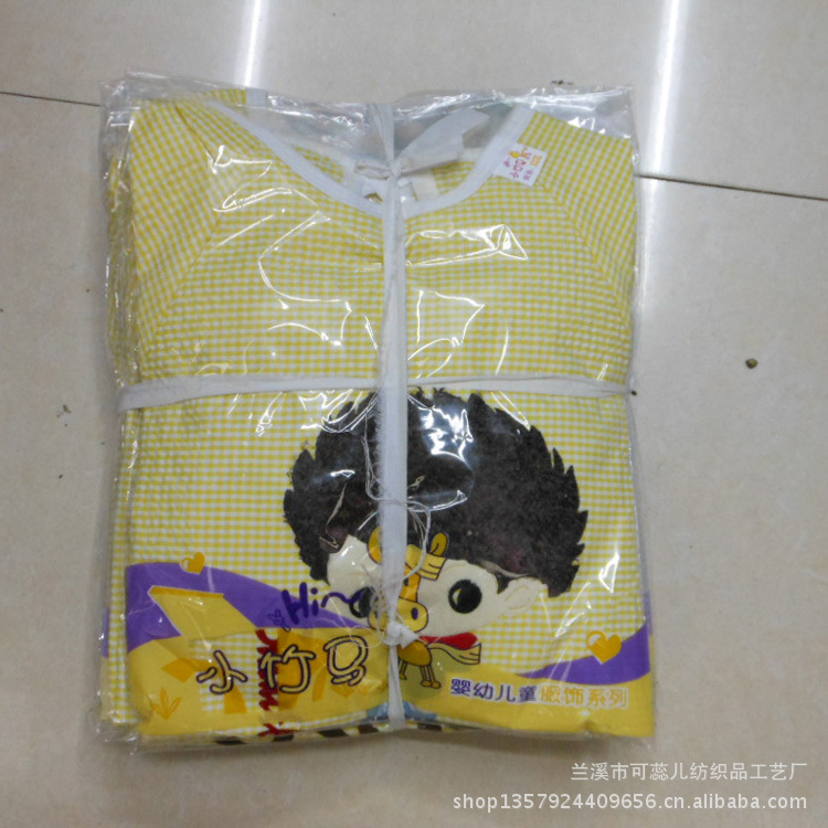 廠家直銷 毛絨卡通全棉泡泡紗嬰童防水罩衣 反穿衣