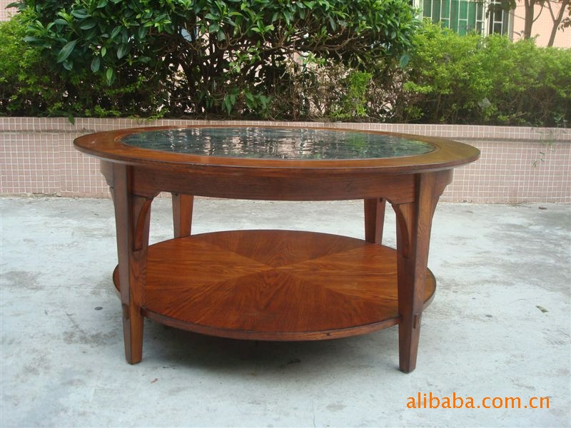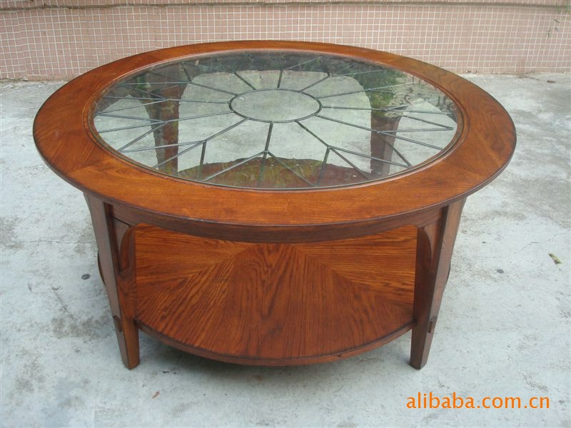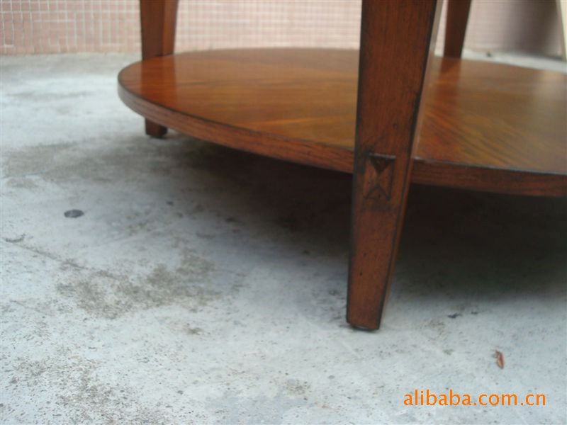 傳統美式田園家具柞木紅橡木圓咖啡桌,矮幾