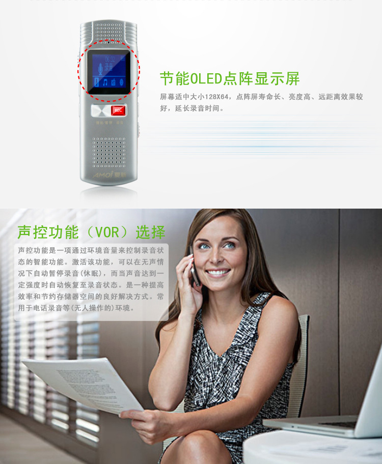 優勢1:鋅合金模具,質感非常好優勢2:外觀時尚大氣,可作為MP3使用優勢3:音質表現非常好,外放效果好,便于與他人分享優勢4:高品質PCM384kbps錄音,行業領先優勢5:機身自帶刪除功能,刪除錄音文件更加方便 優勢6:中文顯示屏,方便操作優勢7:表面高檔噴漆,耐磨優勢8:屏幕中文顯示,方便操作優勢9:采用高性能主控芯片,反應速度快