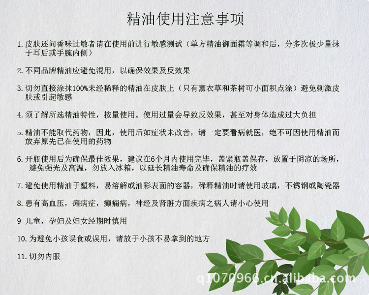 【使用方法】洗臉后,取適量相應精油涂抹于臉部,按[mo]至完全吸收,使皮膚全面的吸收有效成分