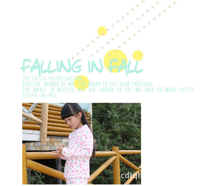 韓版童裝小貓印花女孩保暖純棉不倒絨內衣套裝(白色 加厚)