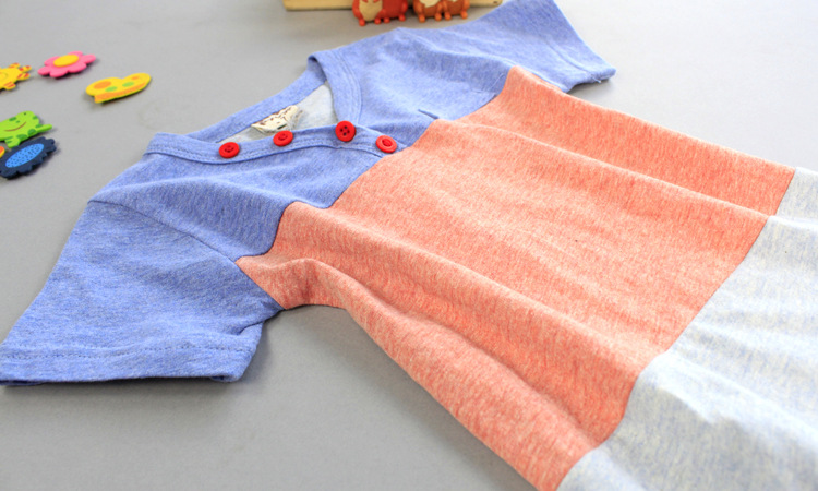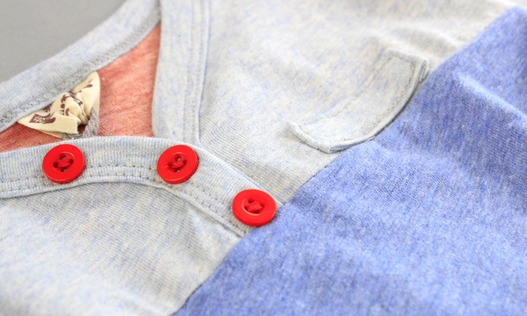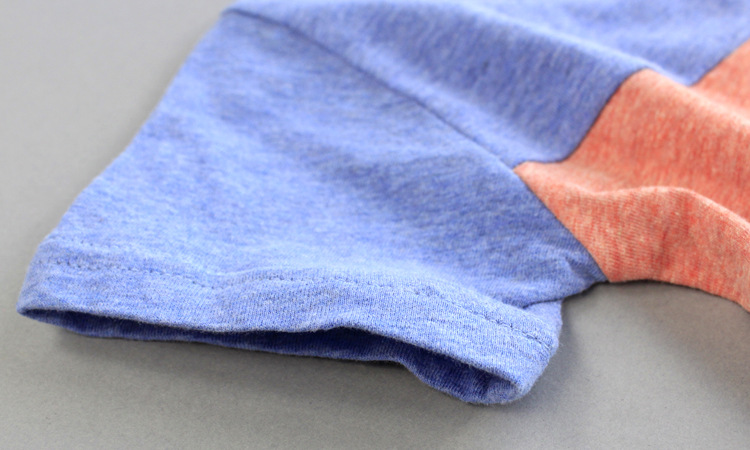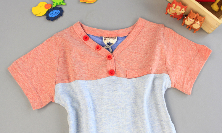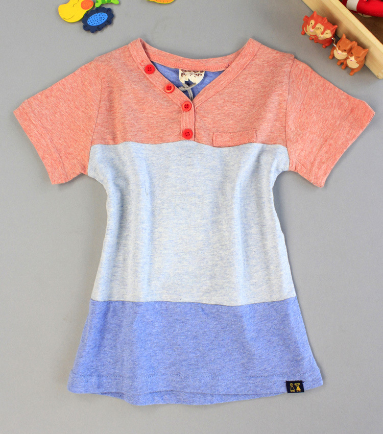 R6Y 原創童裝 皮猴西西熱賣款推薦 小V領三色拼接休閑百搭純棉T恤