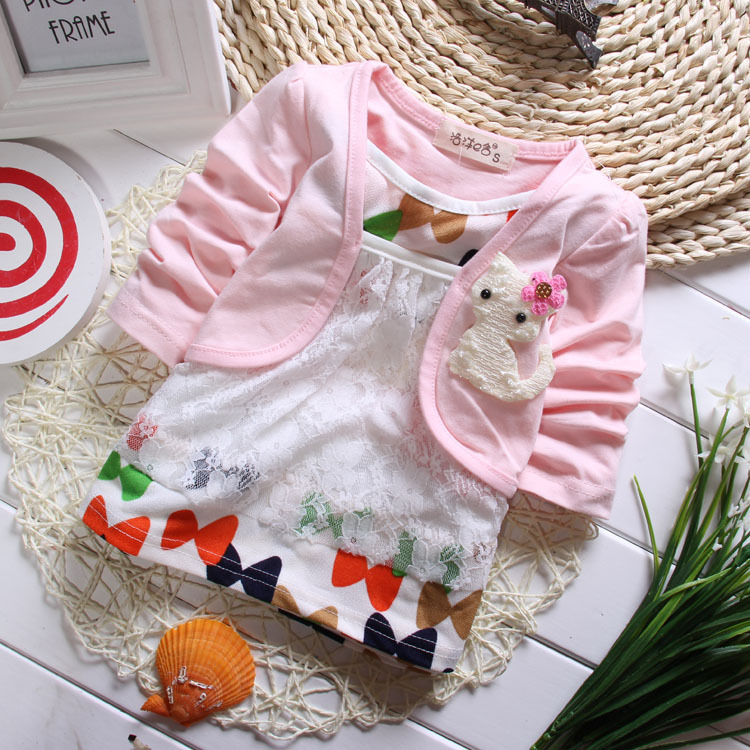 秋季爆款全棉奧戴爾卡通小貓咪假兩件女童T恤韓版外貿童裝