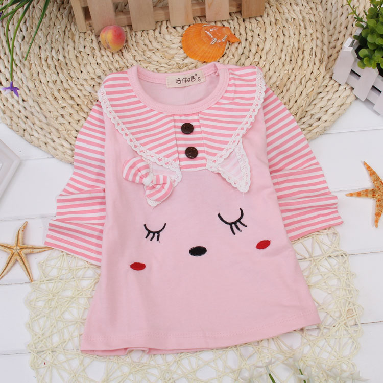 童t恤2014秋季新款全棉卡通女童長袖笑臉拼色童t恤韓版外貿批發