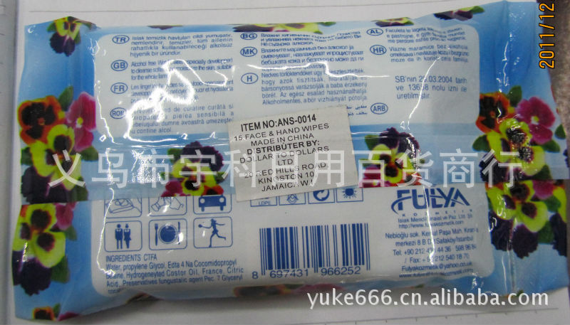 此款15片裝女性潔膚濕巾是適合女性朋友們度假休閑時使用。本產品不僅提取天然植物成分,添加蘆薈,維生素E并采用天然水刺無紡布制成。而且能夠溫和的去除您臉部,眼部的化妝品,清潔滋潤,無刺激,適合您的敏感肌膚。不含酒精。是您護理肌膚的好幫手!其使用方法也極其的方便,只需將濕巾袋上的小貼紙輕輕揭開,抽取出一張,然后再重新蓋上即可。無需擔心被揭過的濕巾會流失水分。有效預防了各種病菌的感染和傳播。隨著人們的生活水平不斷提高,大家對于自身的健康也越來越重視。本公司正是本著把衛生放在位的宗旨,竭力生產出高質量,高品種的產品?,F如今越來越多的顧客對我們生產的產品表示認可和信任,同時他們也愿意把更多的新朋友介紹給我們。讓我們的產品走的更高更遠。
