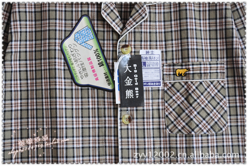 廠家直銷價男士高檔全棉綠色小格子長袖睡衣套裝居家服 多款多色