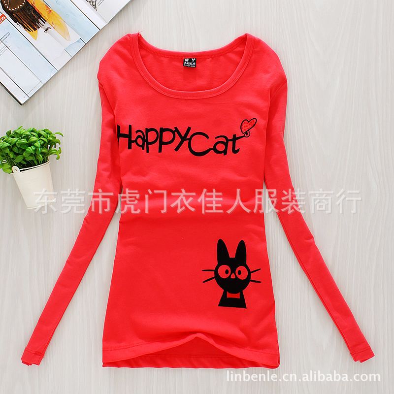 2012秋冬新品純棉拉架秋冬裝彩色圓領長袖T恤批發價 廠家直供