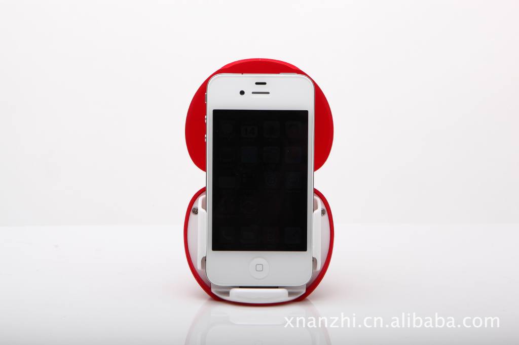 使用手機原配充電器給產品供電,將手機插入充電座,手機指示充電。