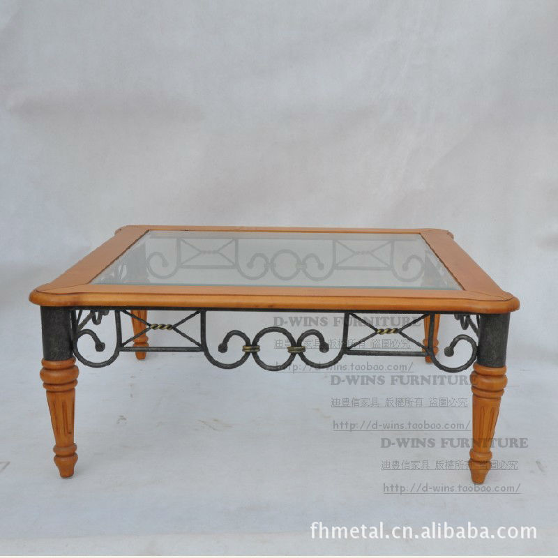 迪豐信供應實木玻璃茶幾美式鐵藝茶幾 大方幾