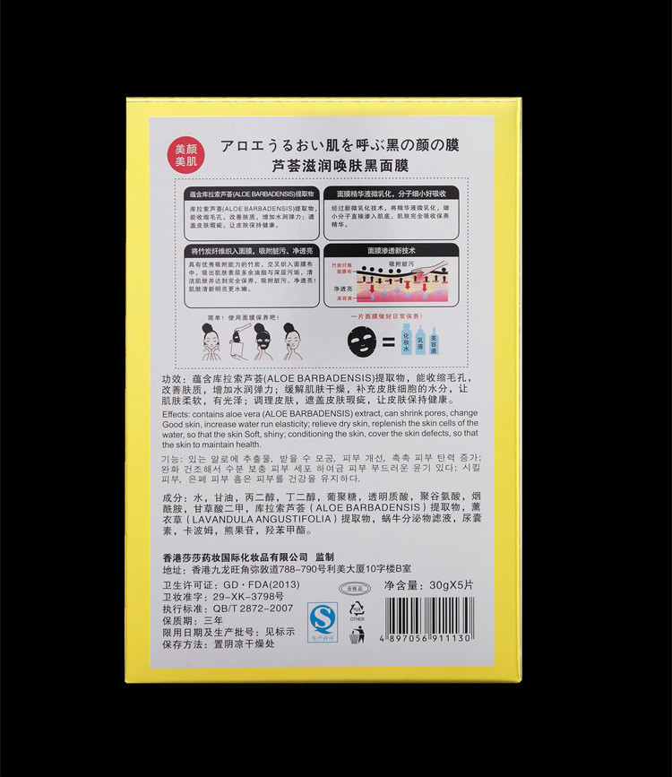 愛御女美顏美肌蘆薈竹炭面膜 奔跑吧兄弟同款黑面膜滋潤美白5片裝