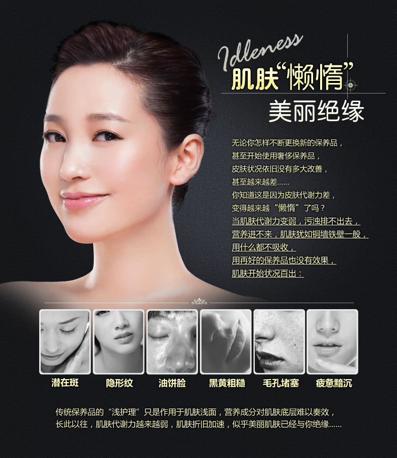 • 保濕,補水,美白,收縮毛孔,提拉緊致,控油,抗敏感,抗皺,粉刺/抗痘,去角質,提亮膚色,祛斑,活膚滋潤,抗衰老適用膚質