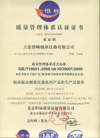 大連博峰軸承儀器有限公司是國內重點科研、生產軸承振動測量儀器 的企業。該公司位于美麗的海濱城市——大連,交通方便,環境優雅。本 公司技術力量雄厚,集幾十年研制生產振動測量儀的經驗,本公司生產設 備精良,工藝水平超群,各種產品 的技術指標不但超過國家標準而且躋 身于國際先進水平。本公司已通過了質量體系ISO9001-2000以及歐盟CE的認證,具 有進出口權,目前產品已出口到美國,德國,立陶宛,日本,韓國,印度,土耳其,意大利,波蘭, 臺灣等國家和地區。