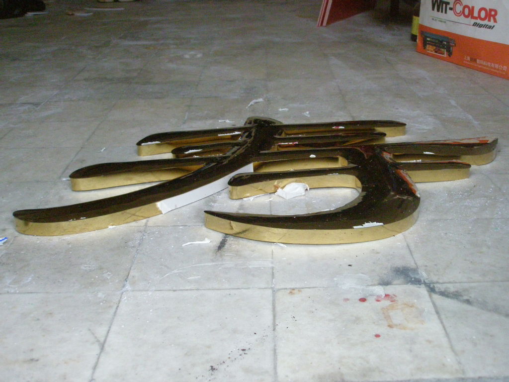 操作工藝順序:字樣—選材—下料—槽鼓—焊接—拋光—電鍍—噴膜—安裝