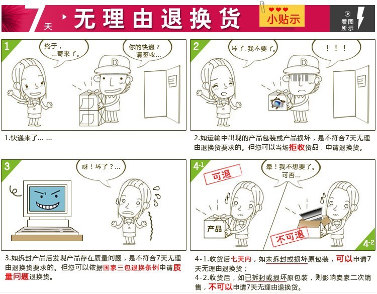 ?如因質量問題或故障,享受7日內退貨;在不影響二次銷售的前提下,30日內換貨;30日以上在質保期內享受免費保修等三包服務!
