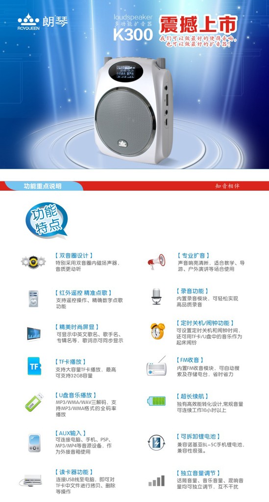正品K300郎琴多功能擴音器音箱便攜音響立體聲教學腰掛領夾 話筒