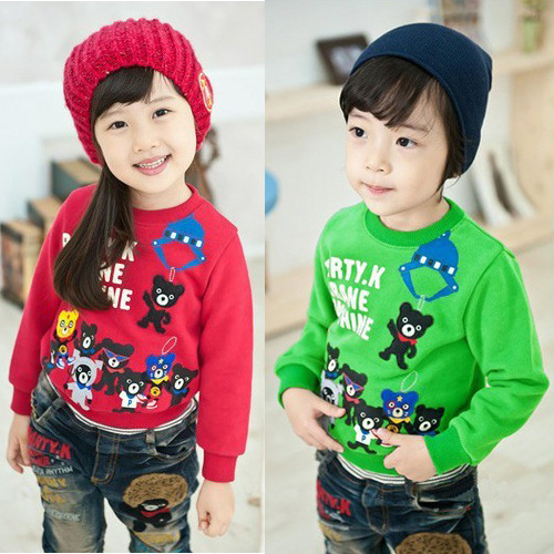 2014網絡爆款童裝韓版時尚圓領印花長袖加厚不倒絨保暖衣