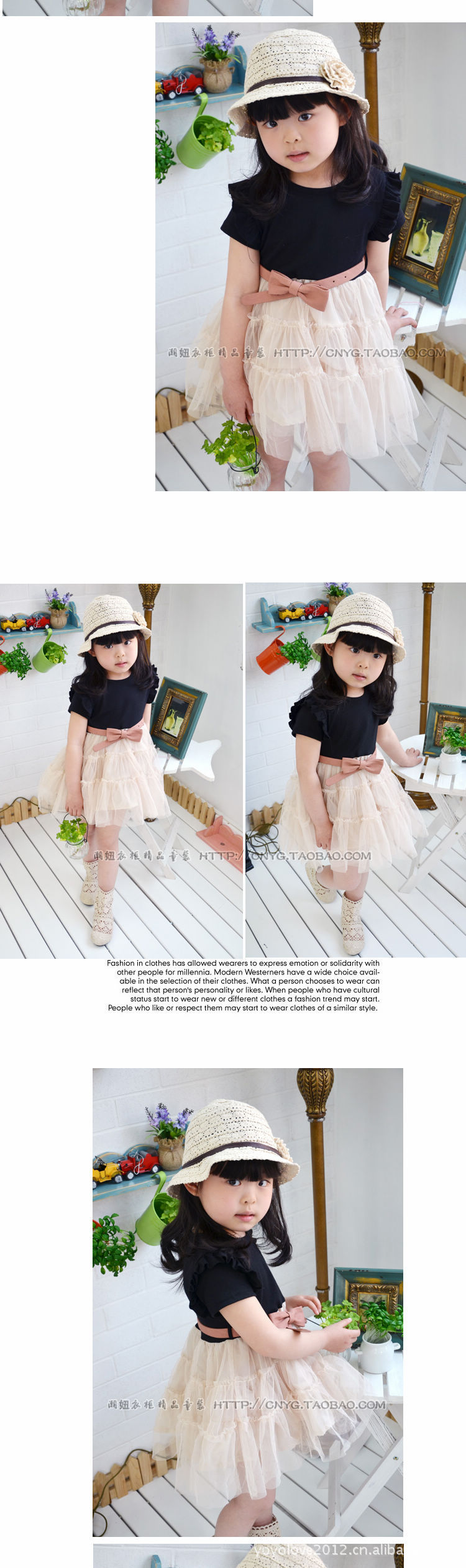 韓T&Z 爆2012女童夏 公主小屋 潮妞 木耳袖腰帶蝴蝶結網紗連衣裙