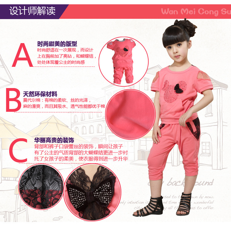 2013新款韓版夏裝女童套裝 莫黛爾中大童休閑款童