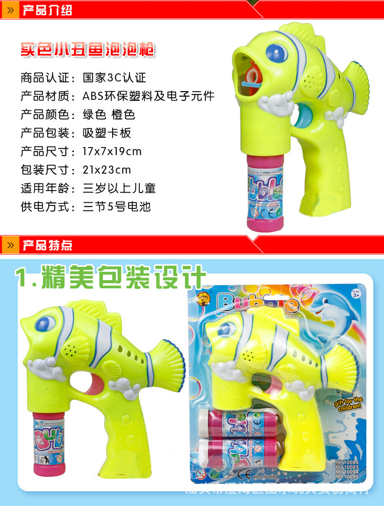 2--新的泡泡槍次使用時要扣動扳機直至泡泡水從噴口處流出才可以,然后再打泡泡就會出來了。