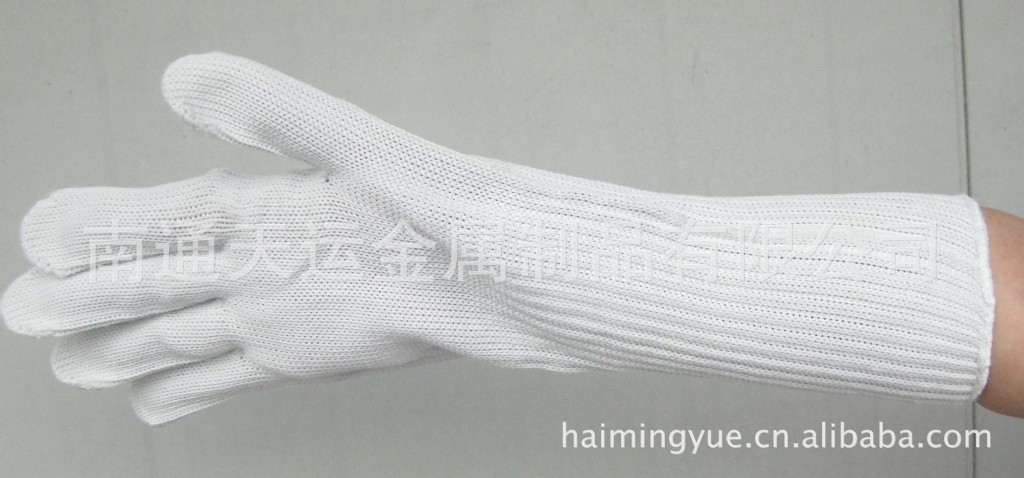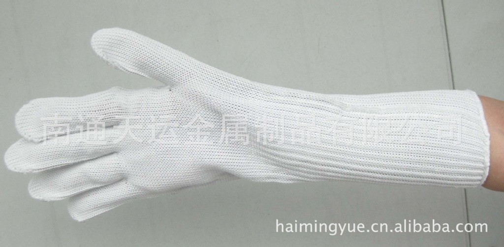 產品性能:采用高強滌綸包裹多股鋼絲線,然后編織手套,整個手套的每個部位都有鋼絲線。