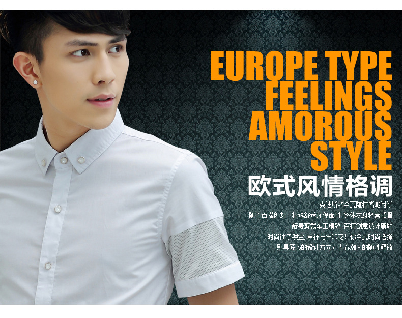 男襯衫2015男士春裝襯衫韓版修身時尚印花男式襯衫牛津紡短袖襯衫