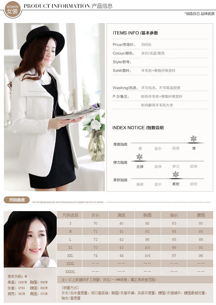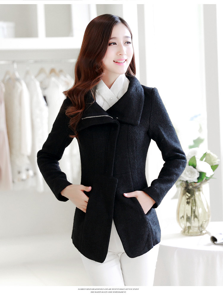 2014冬裝新款韓版大翻領毛呢外套 長袖拉鏈呢子外套女裝015