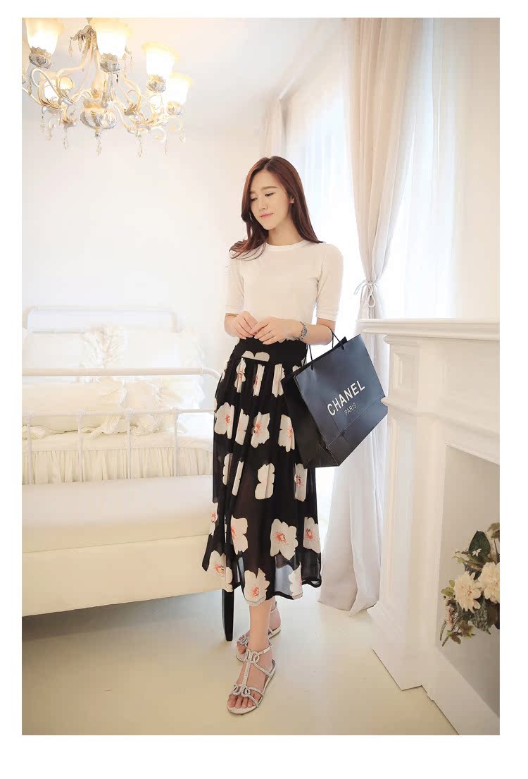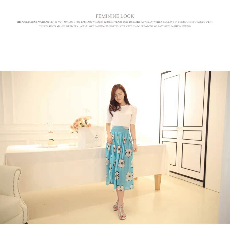 2015春裝熱銷新款韓版女裝花朵印花半身裙 半身長裙9008