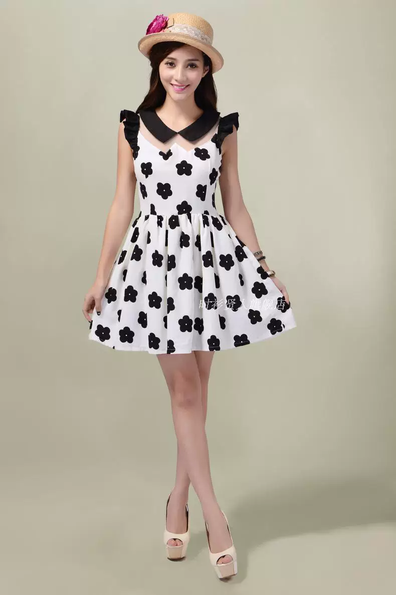 夏裝新款 飛飛袖雪紡連衣裙 修身碎花連衣裙娃娃領裙子5040