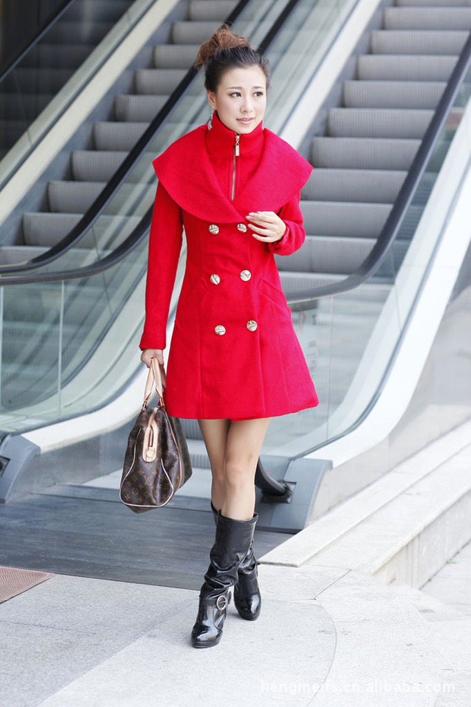 2011冬裝大碼外套,韓版立領假兩件套修身毛呢大衣 淘寶網店代理