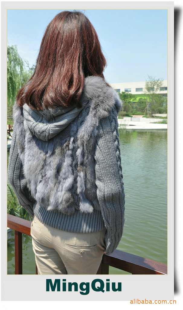 廠家直銷兔毛加毛線上衣外套裘皮服裝皮草