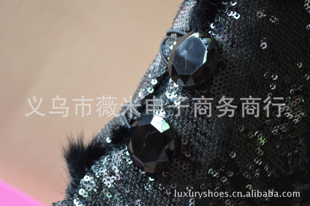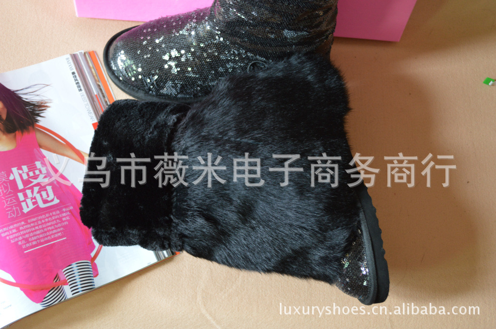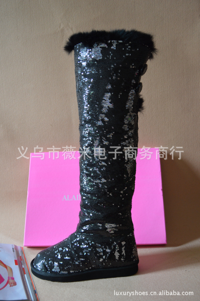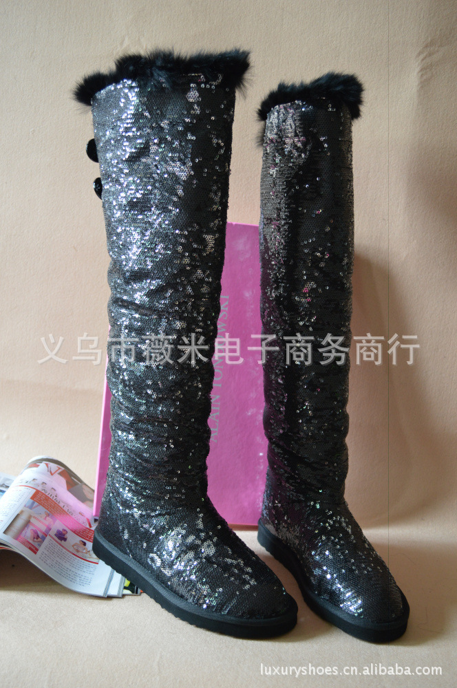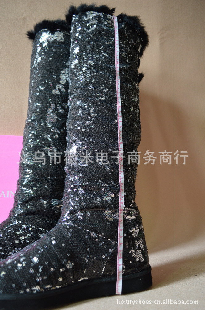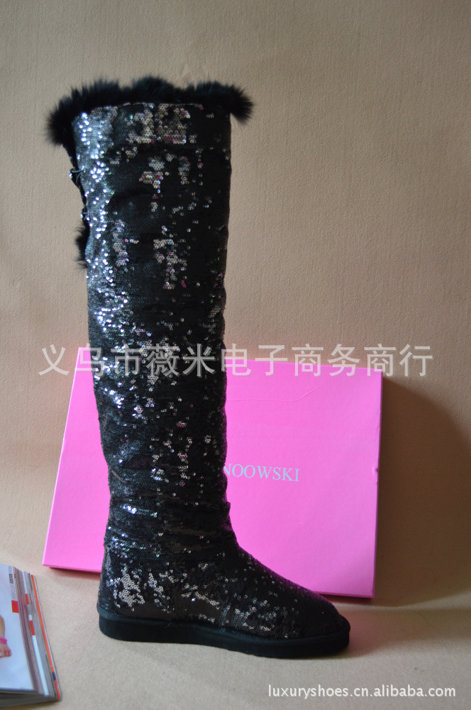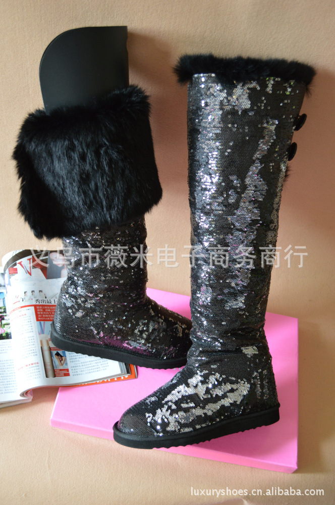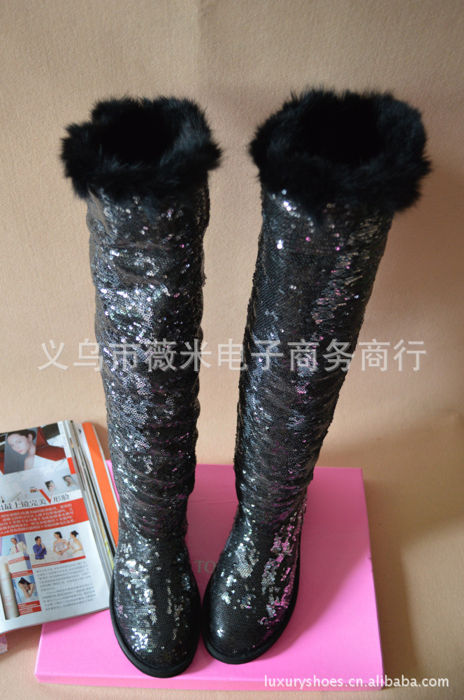 吳佩慈潮鞋個性韓版亮片真兔毛女靴兩穿過膝長筒靴雪地靴 代發