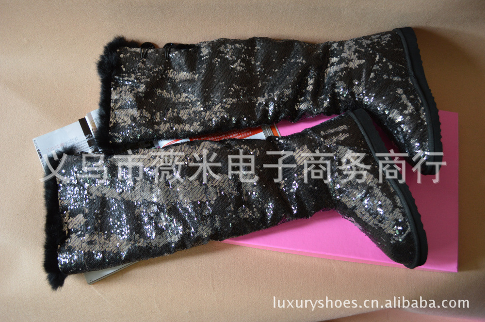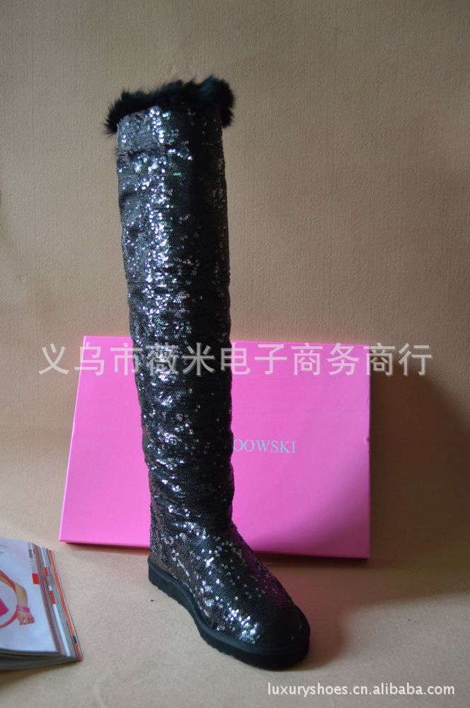 潮牌新款吳佩慈同款2012年亮片過膝高筒長靴