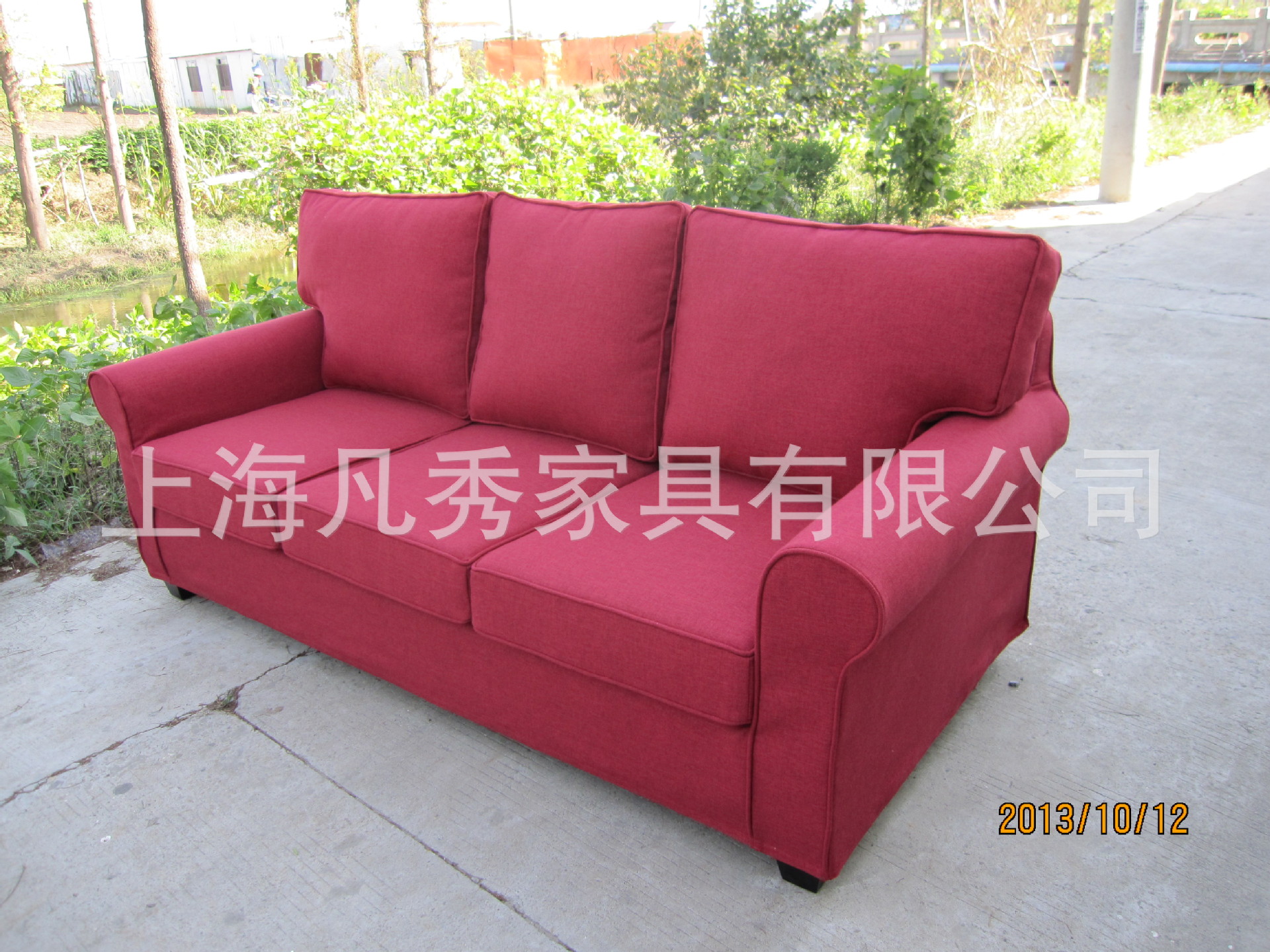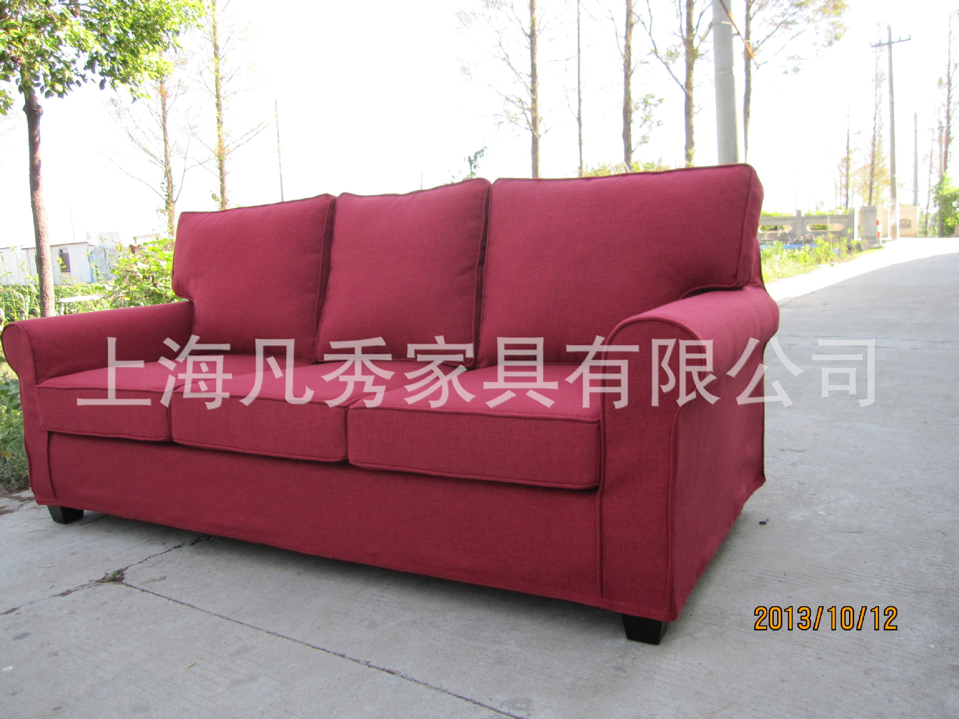 凡秀家居美式布藝三人沙發雙人沙發北歐宜家全拆洗暗紅絳麻面料