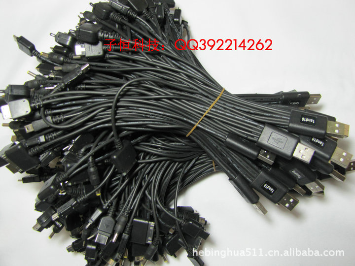 說 明:配10條現在手機的主流充電接口;配合車充頭(或充電頭,或電腦USB),即可實現充電.