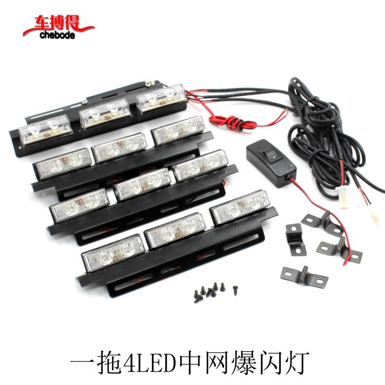 熱賣汽車一拖二 爆閃燈 中網爆閃 開道燈超亮紅藍爆閃12LE