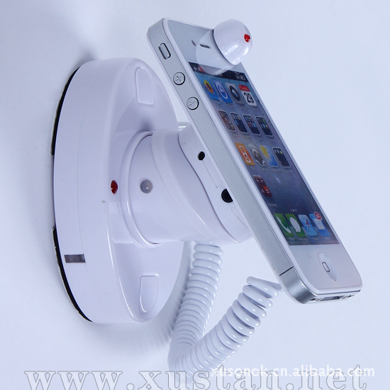 手機、數碼相機、MP3、MP4、GPS等數碼電子產品實際陳列于本品上,本產品由報警主機、報警探頭、展示支架等組成。報警主機安裝于展示架或陳列柜上,報警探頭則粘附于展示產品上。顧客可以方便的從架子上取下陳列品,自由的對陳列品的功能和外觀進行操作和試用,如果顧客想將陳列品拿走,報警器會立即發出持續的報警聲,報警聲將持續到管理人員來做復位處理為止。