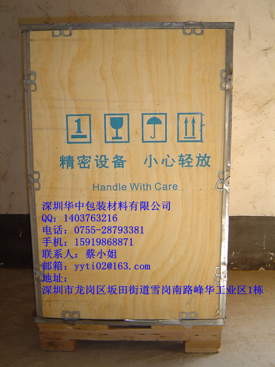 深圳華中包裝 公司主要產品類型有:出口木箱、出口卡板、免熏蒸木箱、熏蒸木箱、免熏蒸卡板(托盤)、熏蒸卡板(托盤)、真空包裝箱、防水木箱、防震木箱、夾板箱、實木箱、地臺板、棧板等各種包裝材料。產品承重從幾公斤到幾十噸。廣泛適用于機械、電氣(電器)、通信、玻璃、精密儀器數控機柜(機床)等產品設備的安全運輸包裝。公司已通過ISO9001:2000國際質量體系認證;產品曾榮獲《中國中輕產品質量認證中心》、《質量、信譽雙保障示范單位》。