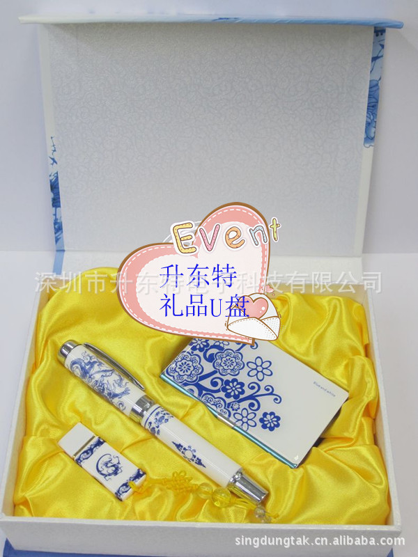 產品配置:青花陶瓷簽字筆 青花瓷U盤 青花瓷滴膠名片盒 禮盒包裝 手提袋
