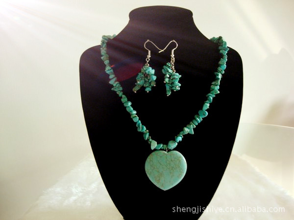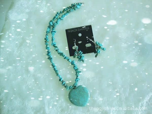盛記寶石 008#時尚心形吊墜項鏈 人造石項鏈 心形仿松石 項鏈