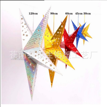 新年春節裝飾禮品吊頂掛飾雙面立體鐳射五角星燈罩酒吧星星燈罩
